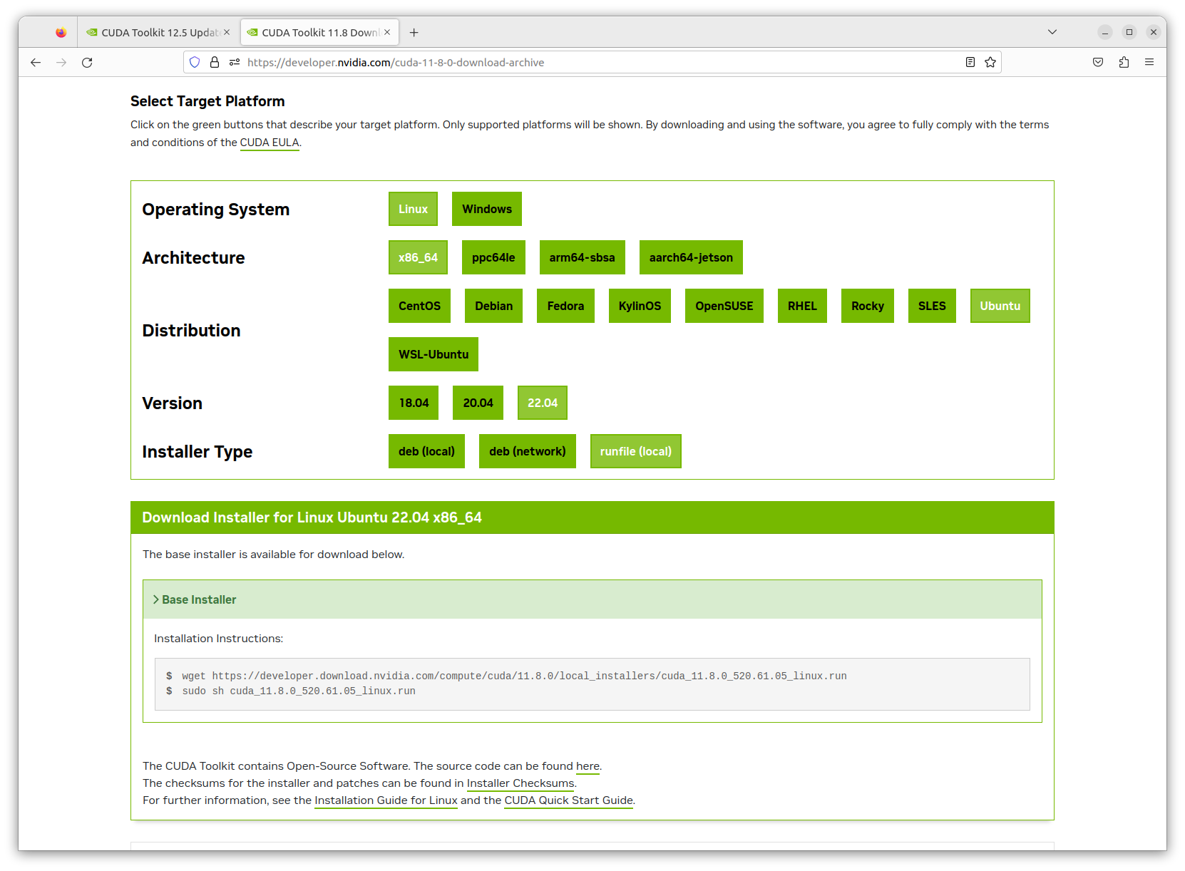 CUDA는 최근에 11, 12시리즈가 시장에서 주력으로 사용되는데, 많은 오픈소스 ML 프레임웍이 11버전을 지원한다.