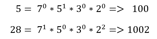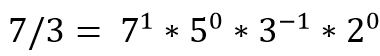 즉, 분수로 나타낸 수를 아래 위 각기 소수의 거듭제곱 형태로 나타낼 수 있다(아래는 차례로 2,3,5,7까지만 써보자)