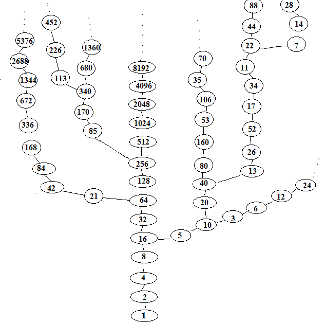 콜라츠의 추측은 아래 단순한 규칙으로 반복하였을때 모두 1로 귀결된다는 추측이다.