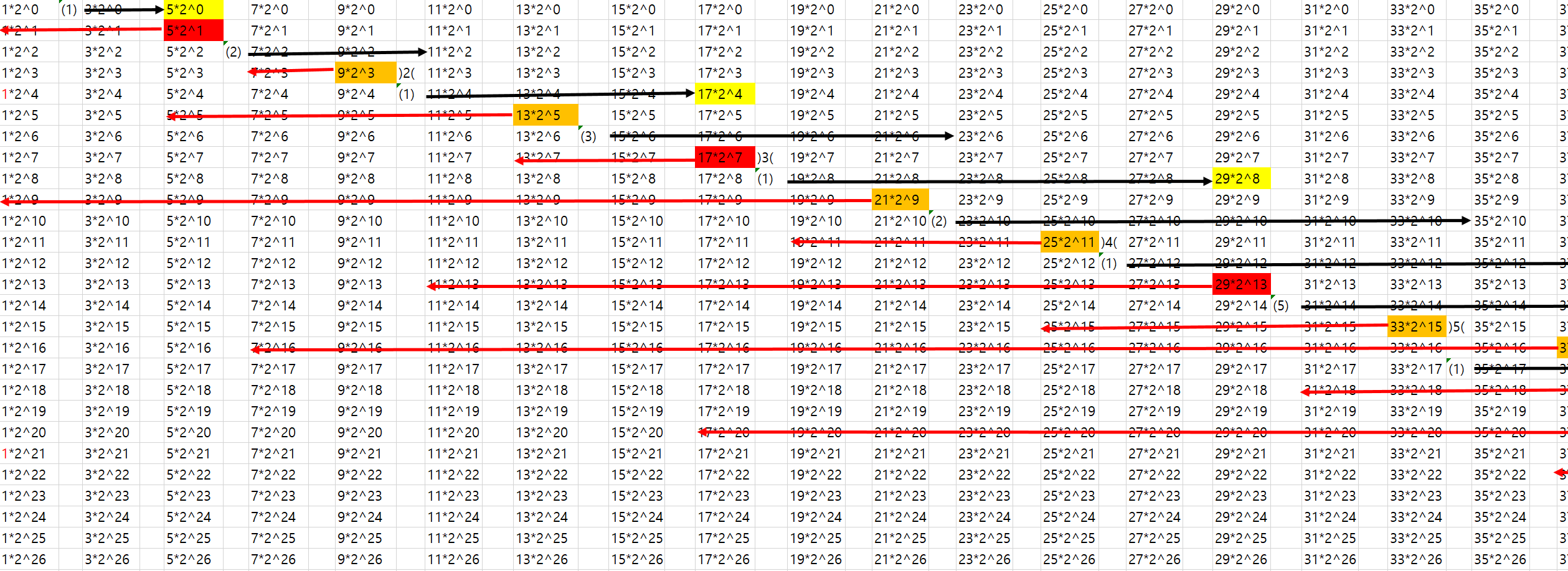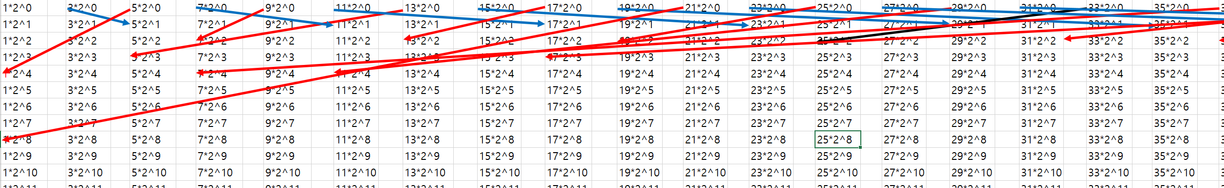 이것을 더 크게 나타내보면 아래와 같다. 이번에는 even*2^x 패턴에서 이 even값들만 나열해보자. 그러면 더 간단히 나타낼 수 있다.
