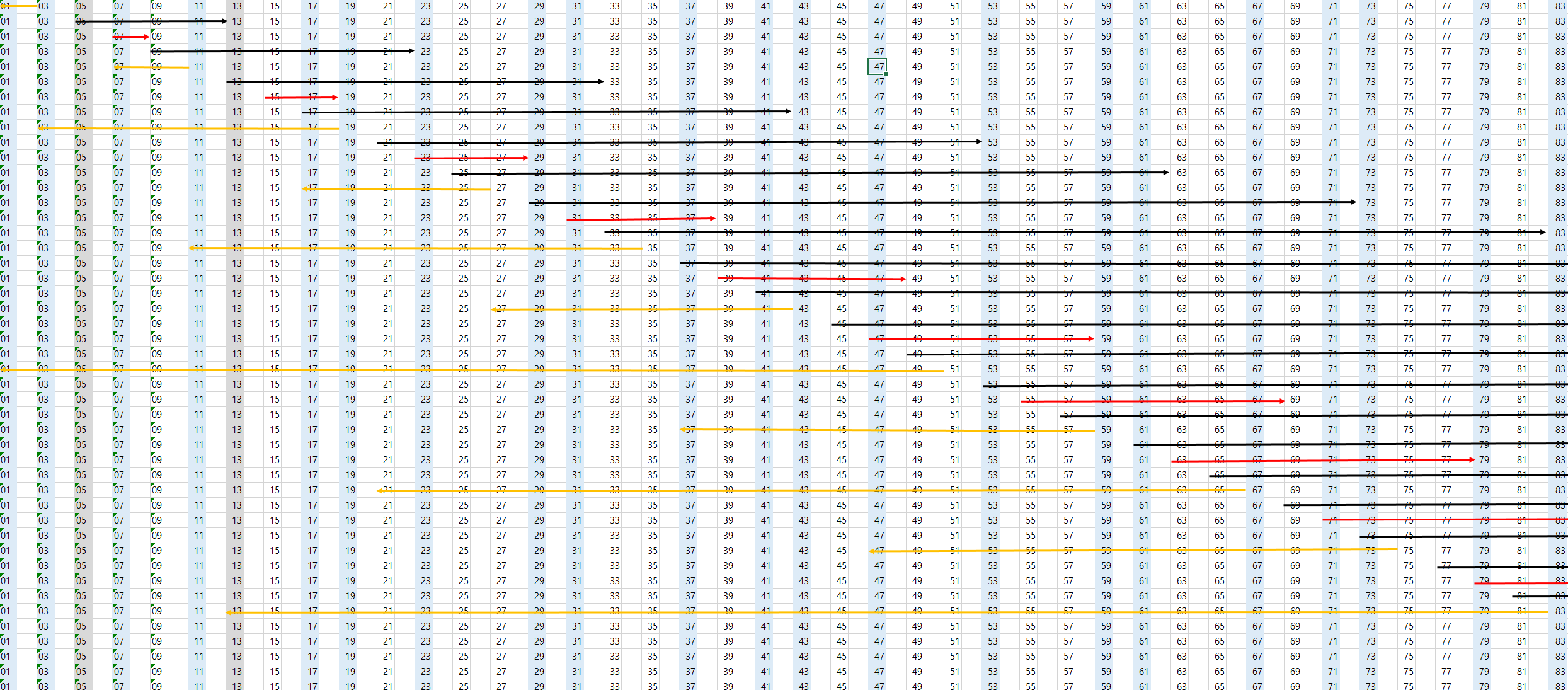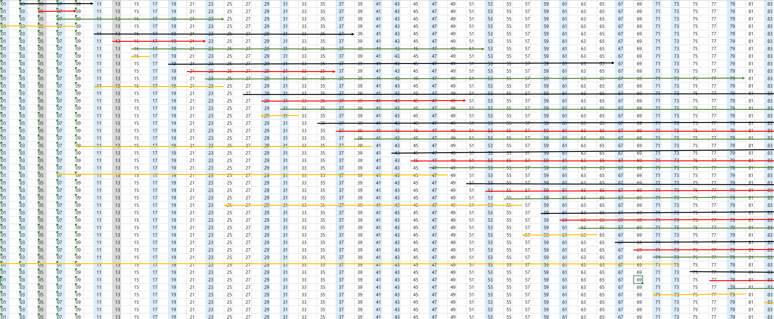 위 그림에서 아예 홀수를 순서대로 나열하는 그림으로 바꾸면 아래와 같은 그림으로 전환된다.