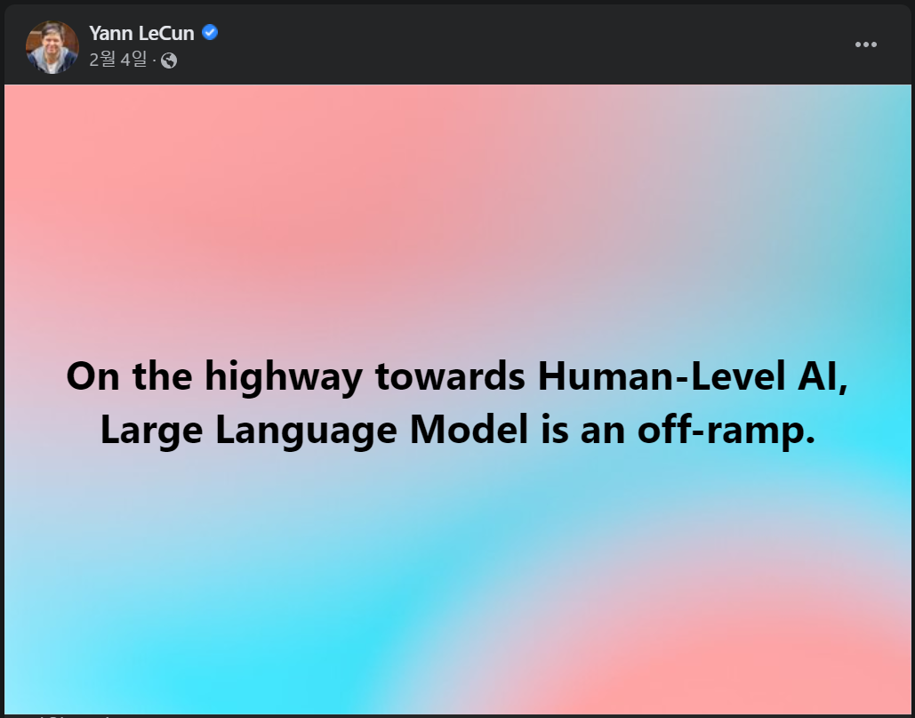 ChatGPT에 대한 다양한 전문가의 반격이 이어지고 있다. "이 녀석은 진짜 사람같은 인공 지능이 아니다. 인터넷의 거대한 문장들을 흉내내는 데이터 앵무새일뿐이다"가 바로 그것이다. ChatGPT에 대한 맹목적인 추종이 인터넷 전반을 휩쓸기 시작하자, 이를 시니컬하게 바라보는 전문가들도 영상에서 많이 보았다. 그들에게 ChatGPT는 흥미롭지만 그렇게 이해못할 정도는 아니다. 대표적인 언사로는 딥러닝으로 유명한 제프리 힌튼 교수의 유명한 제자이자, 메타의 딥러닝 전문가 Yann Lecun이다. 그는 지속적으로 Facebook을 통해 LLM(Large Language Model)이 그렇게 추앙받을 정도는 아니라고 밝히고 있다. 오히려 LLM의 범용 인공지능으로 가는 샛길이라고 주장하기도 한다. 그외에도 수많은 유명 인사들의 LLM에 대한 경고가 이어지고 있다. LLM에는 여러가지 한계가 존재하기 때문이다.
