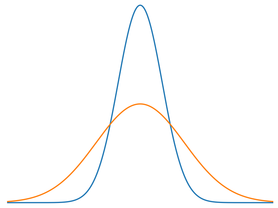 일반 상식에는 슬릿이 모양이 좁으면 더 좁게 퍼져야 하고 슬릿의 모양이 넓으면 넓게 퍼져야 한다. 그런데 그 반대이다. 슬릿의 간격이 어느 크기 이하로 좁아지게 되면(빛의 파장과 관계가 있다) 뒤에 더 넓게 퍼지는 그림이 나타난다. 아래 두개의 분포를 보자. 슬릿 구멍을 지나 벽에 새겨진 밝음의 정도라고 생각해보자. 슬릿이 더 좁아질수록 주황색으로 나타난다.
